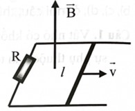 Hai thanh ray có điện trở không đáng kể được ghép song song với nhau, cách nhau một khoảng l trên mặt phẳng nằm ngang. Hai đầu của hai thanh được nối với nhau bằng điện trở R. Một thanh kim loại có chiều dài cũng bằng l, khối lượng m, điện trở r được đặt vuông góc và tiếp xúc với hai thanh. Hệ thống đặt trong một từ trường đều \(\vec B\) có phương thẳng đứng (hình vẽ). Kéo cho thanh chuyển động đều theo phương ngang với vận tốc v.