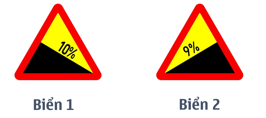 Câu 12: Biển nào sau đây là biển "Dốc xuống nguy hiểm"?