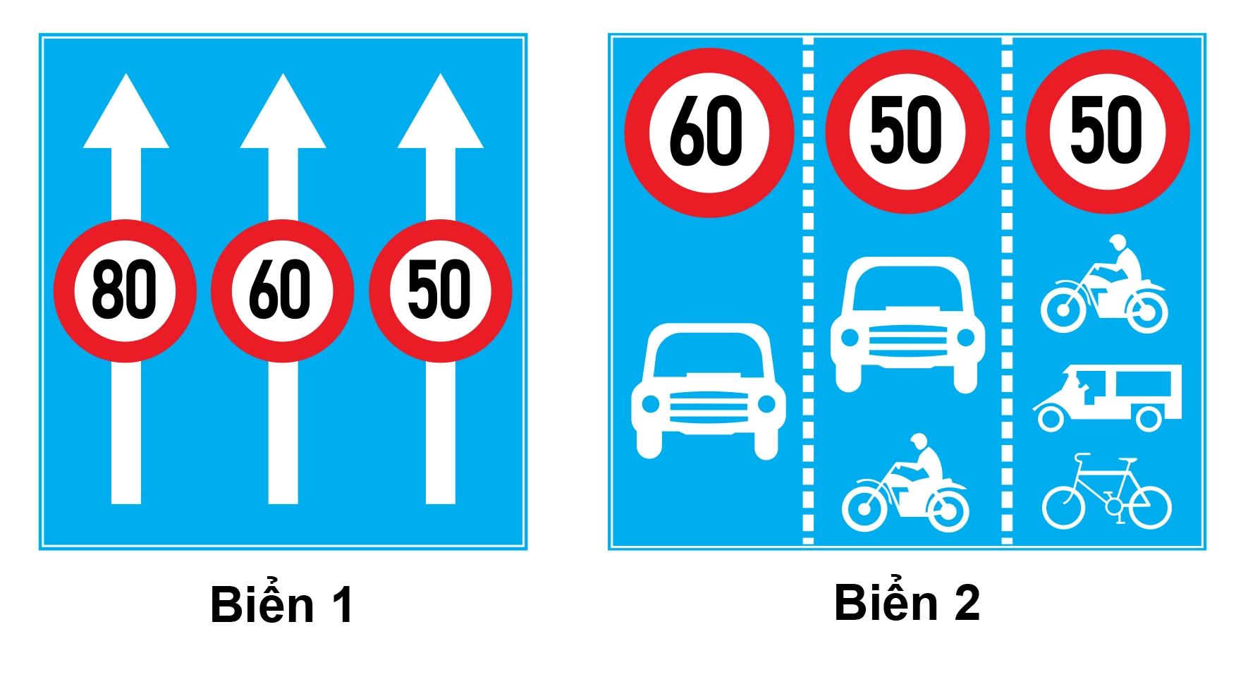 Câu 19: Biển nào báo hiệu các phương tiện phải tuân thủ tốc độ tối đa cho phép trên từng làn đường?