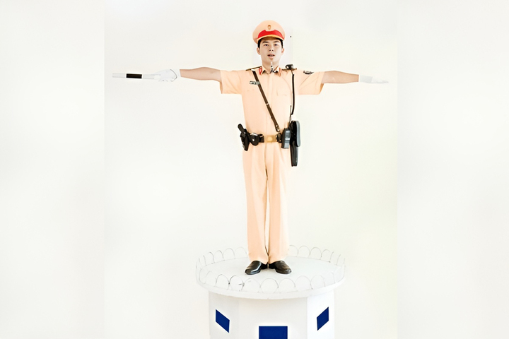 Câu 20: Khi gặp hiệu lệnh điều khiển của Cảnh Sát Giao Thông như hình dưới đây thì người tham gia giao thông đường bộ phải đi như thế nào là đúng quy tắc giao thông?