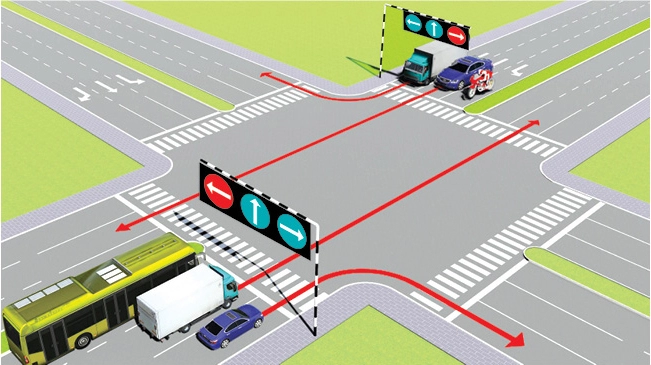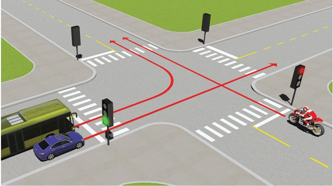 Câu 6: Theo tín hiệu đèn, xe nào đi là đúng quy tắc giao thông?